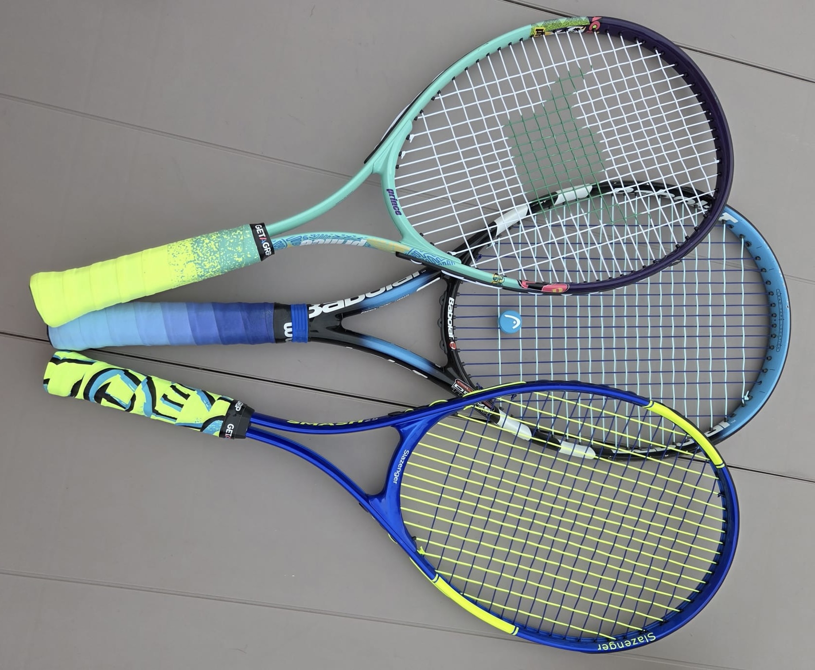 Pricing starts at 40 eur (includes: pick up & return of the racket at your chosen location (North County Dublin only), stringing with your desired colours, fitting of new grip and cool dampener)